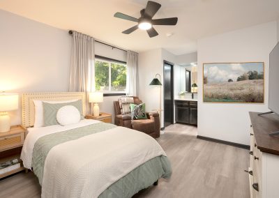 Each of our private and semi-private rooms is set up with comfort and care in mind. Soft furnishings, gentle colors, and thoughtful touches help residents relax, read, or simply enjoy quiet time. These rooms are each resident’s private space — their own home within our community where they can feel comfortable, secure, and truly themselves.